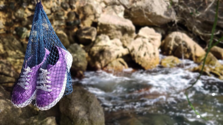 Da fruteira suspensa às bolsas e sandálias feitas de redes de pesca reaproveitadas, cada peça é uma forma de transformar impacto negativo em mudança positiva.